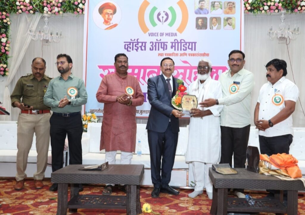 बुलढाणा मेहकर तालुक्यातील जानेफळ येथील ज्येष्ठ पत्रकार सय्यद मेहबूब यांचा व्हॉइस ऑफ मीडिया तर्फे मेहकर येथे काल आयोजित कार्यक्रमात मेहकर तालुक्यातील ज्येष्ठ पत्रकारांचा सन्मान करण्यात आला यावेळी सैय्यद महेबुब यांचा सन्मान करतांना दैनिक देशोन्नतीचे आवृत्ती संपादक राजेश राजोरे साहेब, व सुधिर चेके पाटील ,तसेच बाजूला व्हाईस ऑफ मीडियाचे प्रदेश अध्यक्ष अनिल म्हस्के पाटील, सिध्दार्थजी आराख व इतर सर्व पत्रकार बांधव उपस्थित होते